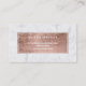 A modern, stylish appointment card for hair and makeup artist business card with modern hand lettering style brush typography in faux rose gold foil on a trendy and elegant white marble background.