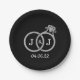 Chic Faux Silver Foil Monogram Wedding Rings Paper Plate