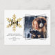 A festive holiday postcard design that features a space for your favorite photo with a chic gold glitter snowflake and trendy "Joy" script wording. Personalize this unique holiday photo design with your custom Christmas greeting and name.