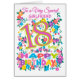 A very pretty, floral 18th Birthday Card for a 'Very Special Girlfriend', with a Candy Pink and Green number 18 and the word 'Step Daughter in Candy Pink', with clusters of bright flowers and butterflies and 'Happy Birthday' in all the colours of the rainbow.