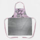 On this stylish apron is a silver floral pattern on a pink backdrop where you can personalise it with a name, logo or phrase or keep as is with the words "Boss Lady" which is bordered by a silver necklace and below that are shimmery silver stripes for added chic.