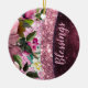 Chic floral Burgundy pink purple glitter monogram Ceramic Ornament