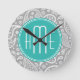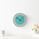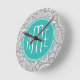 Chic Floral Grey Paisley Pattern & Blue Monogram Round Clock
