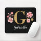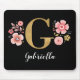 A beautiful, feminine monogrammed pink floral mouse pad, featuring pink flowers and a faux gold monogram letter G on a black background. Personalise the mouse pad by adding your name underneath the monogram. Makes a fun gift for a friend or for a bridesmaid gift. Designed for you by Blackberry Boulevard.