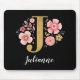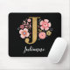 A beautiful, feminine monogrammed pink floral mouse pad, featuring pink flowers and a faux gold monogram letter J ona black background. Personalise the mouse pad by adding your name underneath the monogram. Makes a fun gift for a friend or for a bridesmaid gift. Designed for you by Blackberry Boulevard.