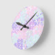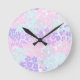 Chic Floral Pink Teal Purple Pattern Round Clock