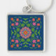 Chic Floral Rangoli on Deep Blue Square Keychain