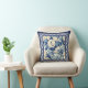 Chic floral vase Blue chinoiserie toile monogram Cushion
