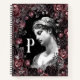 An elegant chic floral vintage baroque monogram "P" personalised notebook with a dreamy celestial starry night background. This whimsical notebook design featuring the monogram "P" was influenced by a combination of different styles including: Dark Academia, Light academia, Renaissance art, Baroque art, Greek and Roman mythology, modern floral Cottagecore aesthetic, and the celestial goddess energy aesthetic.