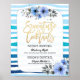 Signature Cocktail Drink Menu Wedding Decor Poster Templates - Elegant Gold Script Watercolor Floral with Blue Brush Wave Stripes.