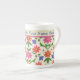 A chic Bone China Mug to personalise, with a colourful pattern of Pink and Orange Flowers and Polka Dots on a leaf-textured Ecru Background. Part of the Posh & Painterly 'Rangoli' collection, this pattern can be adjusted to fit any Mug.