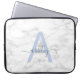 Chic French Blue White Marble Script Name Monogram Laptop Sleeve