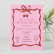 Chic Galentine's Day Bow Pink and Cherry Red Invitation