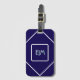 Chic Geometric Blue and White Monogrammed Luggage Tag