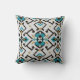 Chic geometric teal black ikat tribal pattern cushion