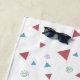 A modern, cute and chic blanket with geometric shapes of triangles and swirls in pastel green, yellow, red and violet colour.