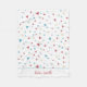 A modern and chic blanket with geometric shapes of triangles and swirls in pastel green, yellow and red colour. Personalise it with your baby's name.