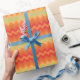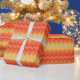 A roll of very stylish Wrapping Paper, with a pattern pattern of red, orange, golden yellow and green chevrons.