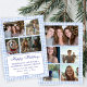 Chic Gingham Christmas Custom 9 Photo Collage Blue Holiday Card