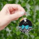 A chic black and white giraffe print keychain with a trendy aqua blue ribbon tied into a girly bow. Personalise this cute animal print design by adding your name. Flat printed image, not actual bow.
