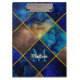 Chic girly faux Glitter gold blue geometric squares Clipboard. To make it extra special, it is also monogrammed and personalised with name or initials or any text you like, click the "customise further" link and use the design tool to modify the design if you like.