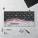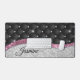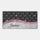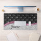 Chic girly faux Silver glitter black pink monogram Desk Mat