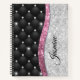 Make back to school fun with this Cute personalised Notebook. It is designed with elegant girly faux silver and pink glitter and rhinestones bling with tuffted black.