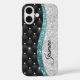Chic girly faux Silver glitter black teal monogram Case-Mate iPhone Case