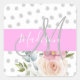 Chic & Girly Floral White Pink Grey Monogram Name Square Sticker