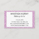 This chic, girly and glam business card has your full name and a lilac purple glitter sparkles background on both sides, and your name, title and contact details on the back. Easily personalise this business card by adding your full name, job title, and contact details. Click "customise further" to change the text colour and font style and size. This chic business card is perfect for a makeup artist, hair stylist, beauty consultant or salon owner.
