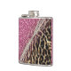 Chic Girly Leopard Print Pink Glitter Hip Flask