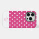 Add a touch of playful charm to your phone with this chic iPhone 15 Pro case featuring a pink and white white polka dot pattern. Designed for those who love a fun and feminine style, this protective tough case is also customisable to make it uniquely yours. Personalise it with your first name in a beautiful script, and add your initials in a stylish monogram for an extra dose of sophistication. Also makes a great gift for birthdays and all occasions.