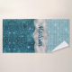 Chic girly teal mint green glitter silver monogram bath towel set
