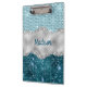 Chic girly teal mint green glitter silver monogram clipboard