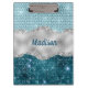 Modern clipboard for your fabulous sketches or designs. With elegant girly faux glitter bling in mint, green teal and faux silver glitter design. This stylish cute design would be great for girls who enjoy sparkly designs. Show off your personal style, look fashionable, trendy and feel stylish around your friends with a unique design on your clipboard or customise it over another product of your choice.