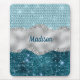 Add a touch of glitter and glam to your home office or dorm with this elegant personalised mouse pad. This chic design template features elegant girly faux glitter bling in mint, green teal and faux silver glitter design. To make it extra special, it is also monogrammed and personalised with name in yellow. click the "customise further" link and use the design tool to modify the design if you like.