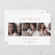 This chic gold 3 photo template save the date postcard is perfect for a modern wedding. The simple design features classic minimalist gold and white typography with a rustic boho feel. Customisable in any colour. Keep the design minimal and elegant, as is, or personalise it by adding your own graphics and artwork.