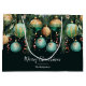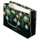 Elegant Christmas holiday LARGE gift bags feature pine branches, green and gold Christmas ball ornaments and ribbons on a deep green background with your details in chic lettering, perfect for your festive holiday gift-giving. MATCHING items in our collection.