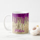 Chic gold, hot pink purple glitter drips monogram Coffee mug. A girly and trendy glittery modern mug. It makes the perfect sweet 16 birthday, wedding, bridal shower, anniversary, baby shower or bachelorette party gift for someone that loves glam luxury and chic styles. Whether for valentines day, Christmas or any occasion in general this cute coffee mug will make a great gift idea for any girl or woman who loves modern sparkly elegance.