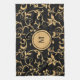 Chic Gold Black Royal Monogram Damask Tea Towel
