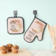 Chic Gold Boho Blush Pink Floral Oven Mitt & Pot Holder Set
