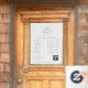 This chic gold business logo QR code store hours window cling is perfect for a small business, restaurant or retail store. The simple design features classic minimalist gold and white typography with a rustic boho feel. Customisable in any colour.