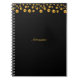 Chic Gold Confetti & Calligraphy on Black Notebook