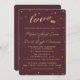 Just royal elegance: "love" faux gold foil script, with two hearts, faux gold foil confetti on burgundy/champagne background. Use Customise it tool to add all needed information. You can change the size, font, colour and wording.
