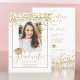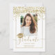 Chic gold confetti white typography graduation, add one of your photo. Class of 2022! Celebrate the graduate. With faux gold foil confetti, geometric frame and cap.
