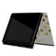 Elegant and stylish this iPad folio style case is done in a chic linen look, with gold tone polka dots. Personalise the golden brown text running down the front right edge, for yourself or as a beautiful gift idea.