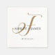 Chic, modern gold monogrammed wedding paper napkins with your names and year established in black elegant hand lettered script calligraphy and classic typography with a gold F monogram on a white background. Simply add your names, monogram and year established beneath. Stylish design and perfect wedding table decor. Contact me for other monograms through the store chat! We're happy to help you make your wedding the most beautiful day! Exclusively designed for you by Happy Dolphin Studio.