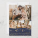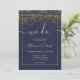 Modern chic faux gold foil confetti, geometric frame script photo initials wedding, add 4 of your favourite couple photo , a simple, minimalist and elegant wedding invitation, add your initials at the back. The navy blue colour is fully editable.