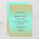 Chic gold typography and gold glitter ombre bright mint teal Bat Mitzvah party invitation. Add your Hebrew name.