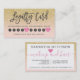 Elegant yellow gold glitter sparkles pastel blush pink script makeup hair pink heart loyalty card with modern hand lettering style brush typography on white , a simple, professional and minimalist card. offer 10 treatments and discount to your customers.
